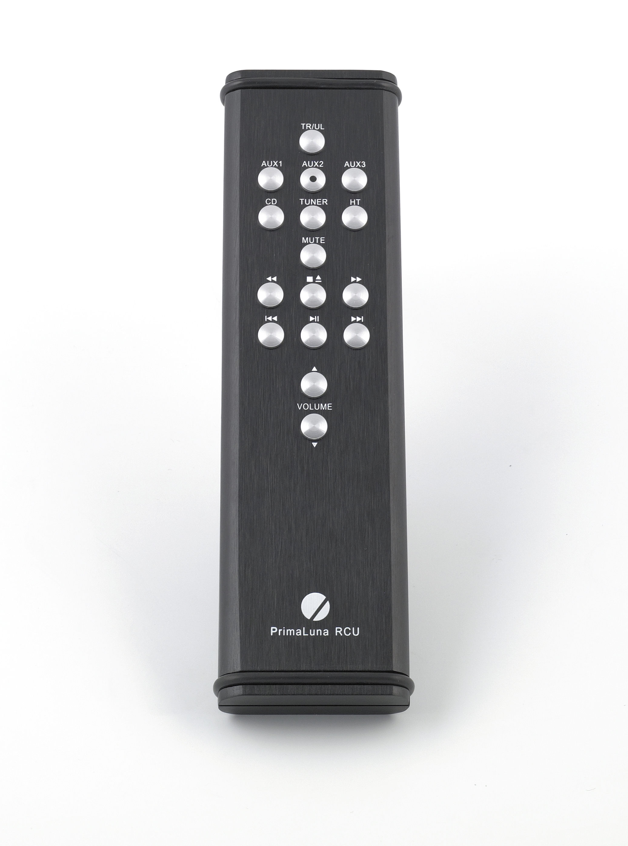 Talking of output tubes, another facility offered by the DiaLogue amplifiers is the ability to switch between ultralinear and triode mode on the fly. Switching between ultralinear and triode mode is as easy as pressing a button on the beautifully crafted infrared remote control; the current mode is indicated by a bi colour LED mounted on the top panel near the driver tubes (red for ultralinear mode, green for triode). The remote control—which weighs a hefty (for a remote control) 335 g (12 oz)—is made from anodised aluminum, has silky metal buttons for all amplifier functions, and has a rubberring around each end to protect the surface upon which it is placed: nice thinking! It also has buttons to control the PrimaLuna CD player, and frankly shames the crappy cheap plastic remote controls most other companies seem to be content to use.