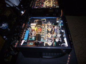 The DiaLogue Premium Integrated Amplifier is the first to go with 3 x 12AU7 tubes. So the full machine has 10 tubes! Less nois, less thd, more tube sound. And of course the more tubes, the better looks :-). More tomorrow, it is ” Enjoy your meal” time!
