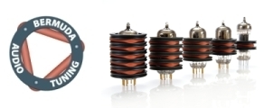 Durob Audio introduces under the brand name “Bermuda Audio Tuning” a series of new tube dampers for 19 – 22 mm tubes like 12ax and 12au7. The idea is simple: add mass to the tube through a more or less flexible connection made out of heat resistant silicon rings. Each ring is attached to the tube in a so-called “Bermuda-Triangle” configuration. The tube dampers are provided in different combinations: