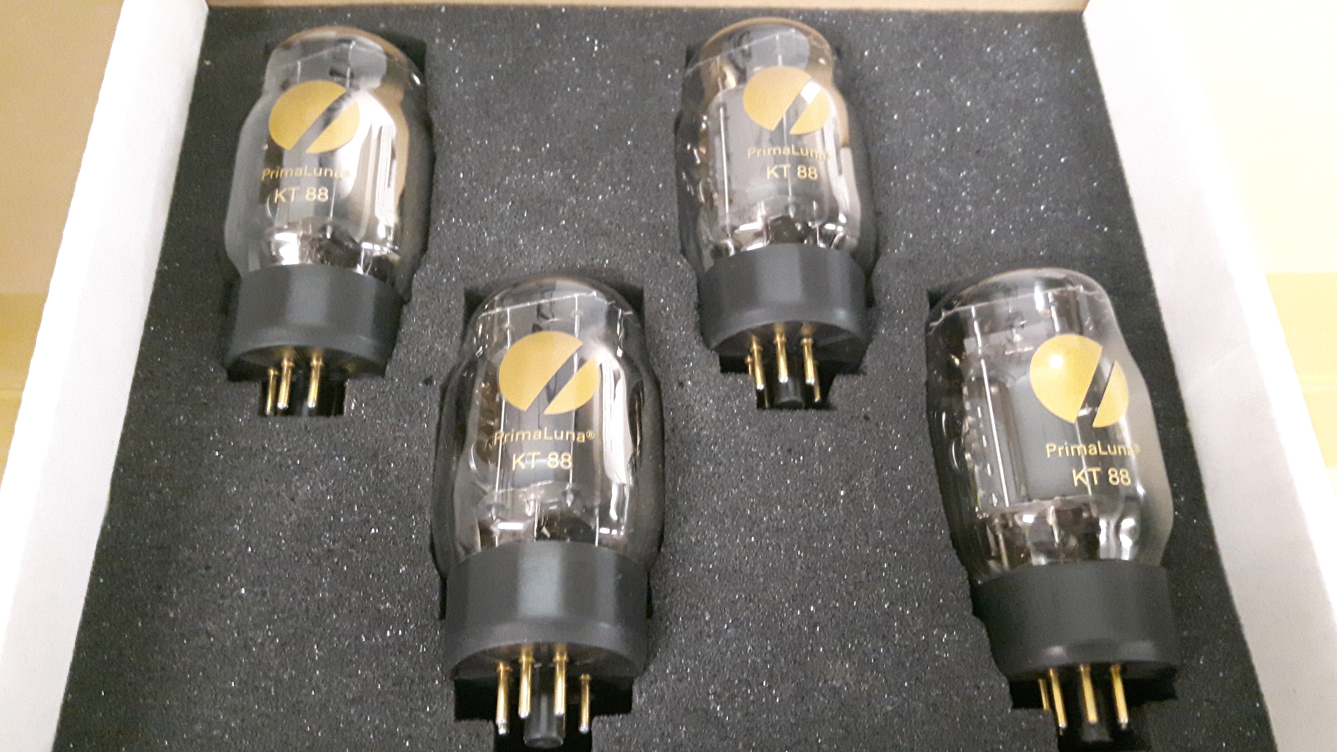 For registered PrimaLuna owners we would like to offer a set (4 tubes) of EAT/PrimaLuna KT88 tubes for a special price. The normal set price for the EAT/PrimaLuna is € 1525 per 4 pieces. You can now get them for a mere € 950. Please be aware we have limited stock of EAT/PrimaLuna sets available. Once these are gone, these won’t be available anymore. The KT88 tubes can be used in all PrimaLuna models and come of course with the PrimaLuna logo. PS If you have not registered your PrimaLuna product yet, or are not sure about it, you still can. Go here: www.primaluna.nl/support1.htm.