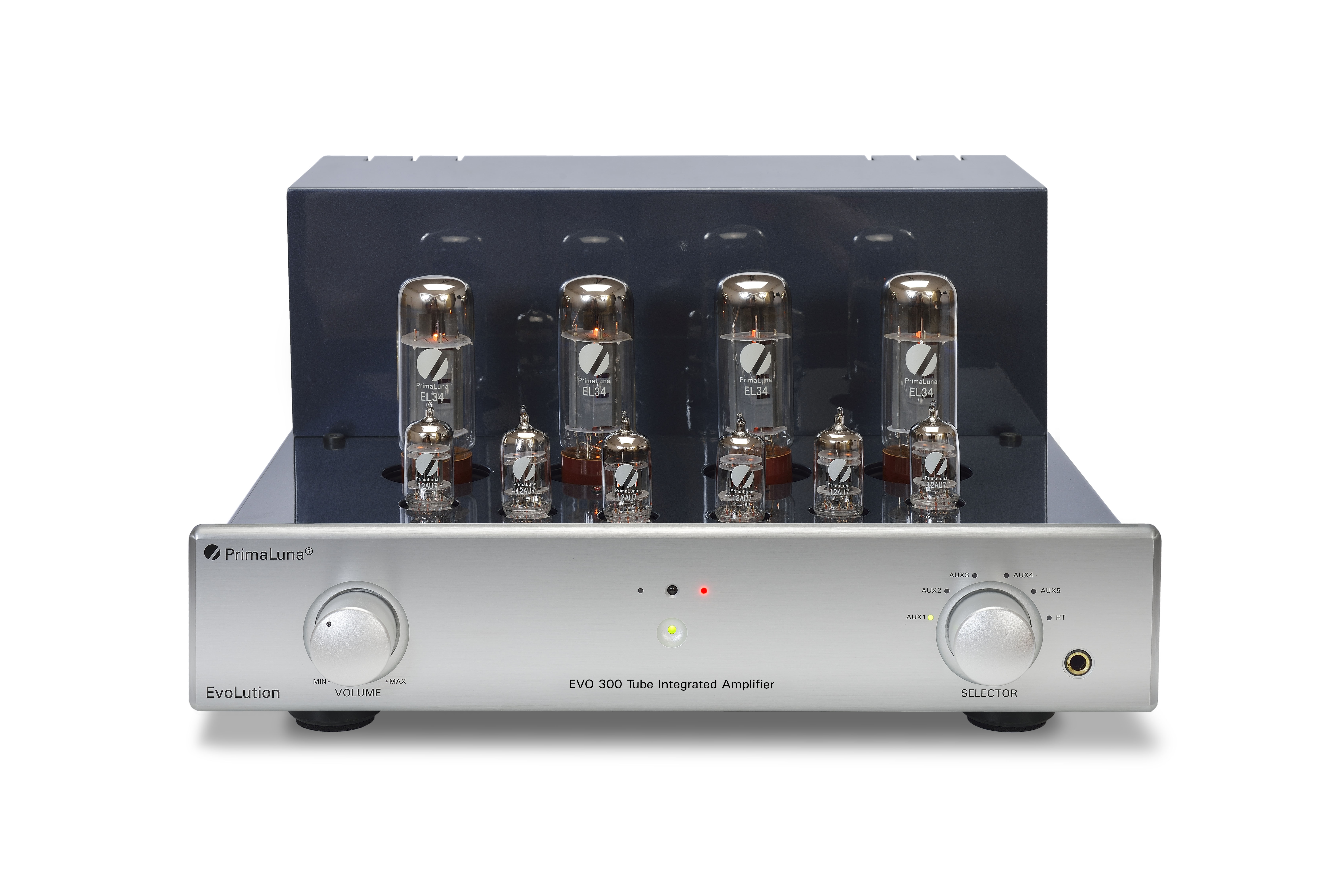 043b – PrimaLuna Evo 300 Tube Integrated Amplifier – silver – front – wthout cage – white background – kopie