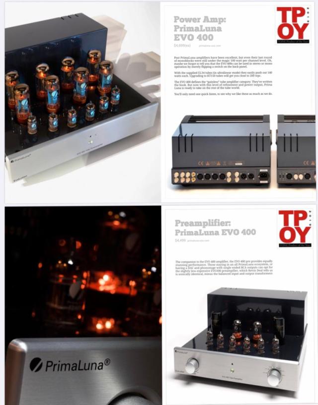 The result is that our EVO 400 combo: Our PrimaLuna EVO 400 Tube Preamplifier & PrimaLuna EVO 400 Tube Poweramplifier have received the Best Product Of The Year award.