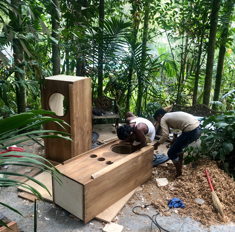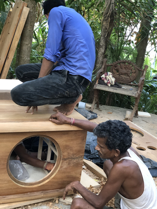 This week we received some very nice pictures from Mr Denzil Sequeira living in Goa India. He sent us pictures of his music system that includes a PrimaLuna ProLogue One Integrated amplifier and Tannoy loudspeakers…The Tannoy loudspeakers were inherited by Denzil some time ago. On the pictures below you can see Abimanu, a local woodworker, working on the cabinets.