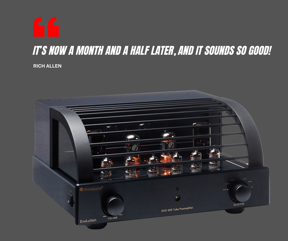 Ok, I’m a WANNABE audiophile, and not the best with technology, but still trying to get better sound at 64 years old. As soon as I plugged this thing, (EVO 400 preamp) into my system, and started playing some music, I knew something special was going on here. Out of the box with no break-in, it was a little harsh and bright, BUT I STILL KNEW! It’s now a month and a half later, and it sounds SO GOOD! When friends and family come over, I have them sit in the sweet-spot in front of my system, and start playing an Elton John SACD, and everyone does the same thing-they look above my system at the blue curtains behind it and kinda smiling, looking like “how’s someone singing up there, but there’s no speaker up there!” My OPPO 105d, modified by Modwright electronics now sounds better than my VPI Scout jr TT. The rest of my system is Cambridge Audio 851w, (probably next to be changed out), and Furman Elite 15 power conditioner, PSB T3 speakers, AQ Gibraltar speaker cables, Kimber Kable Silverstreak, and Cardas Clear interconnects. I’m on a tight budget, and this might not be a High-End, Balls to the walls, best system out there, but since I added this Primaluna, EVO 400 preamp to it, it sure as hell is to me! I’m very happy with it. The only thing that could make it better is if it lasts a long time with no major problems.
