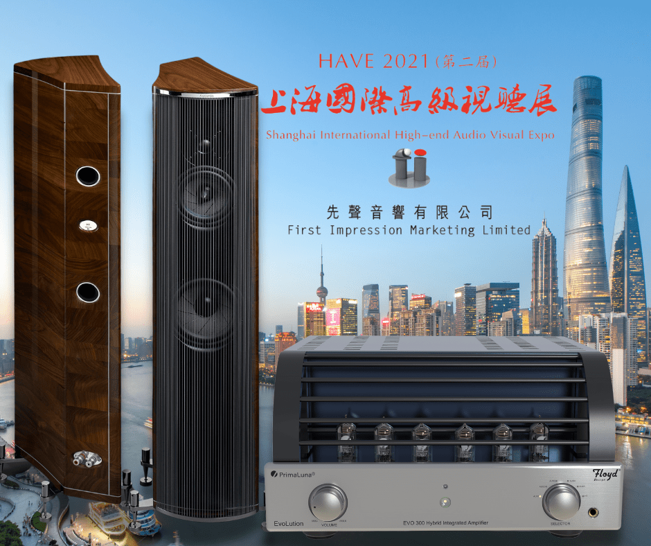 We are pleased to inform you that our distributor First Impression Marketing Limited 先聲音響有限公司 will showcase our brand new PrimaLuna EVO 300 Hybrid Integrated Amplifier in combination with the fantastic sounding Franco Serblin Studio loudspeakers during the Shanghai International High-end Audio Visual Expo 2021 that will take place from 15th-17th October 2021